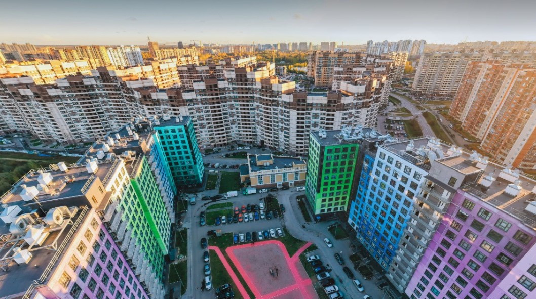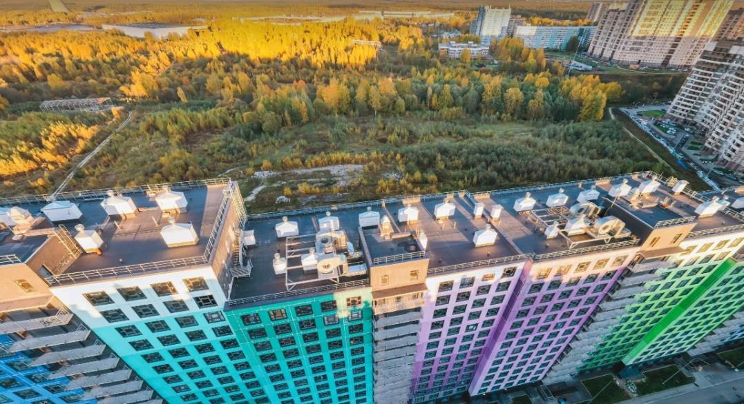 Жилой комплекс расположен в пяти минутах пешком от набережной реки Охта.