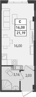 Общая площадь 21.19 м2