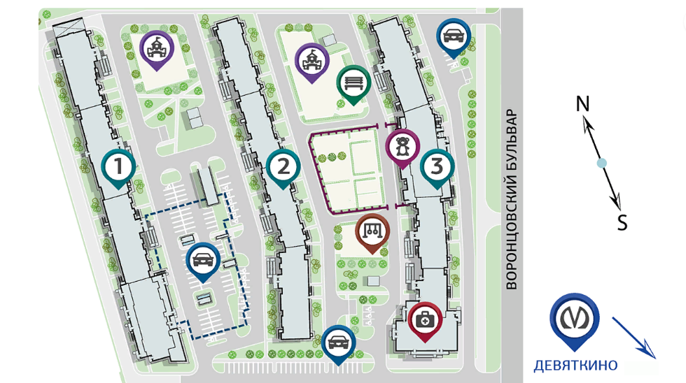 - Пешая доступность до метро Девяткино