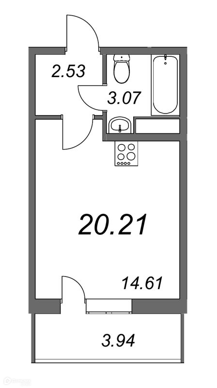 Общая площадь 21.39 м2