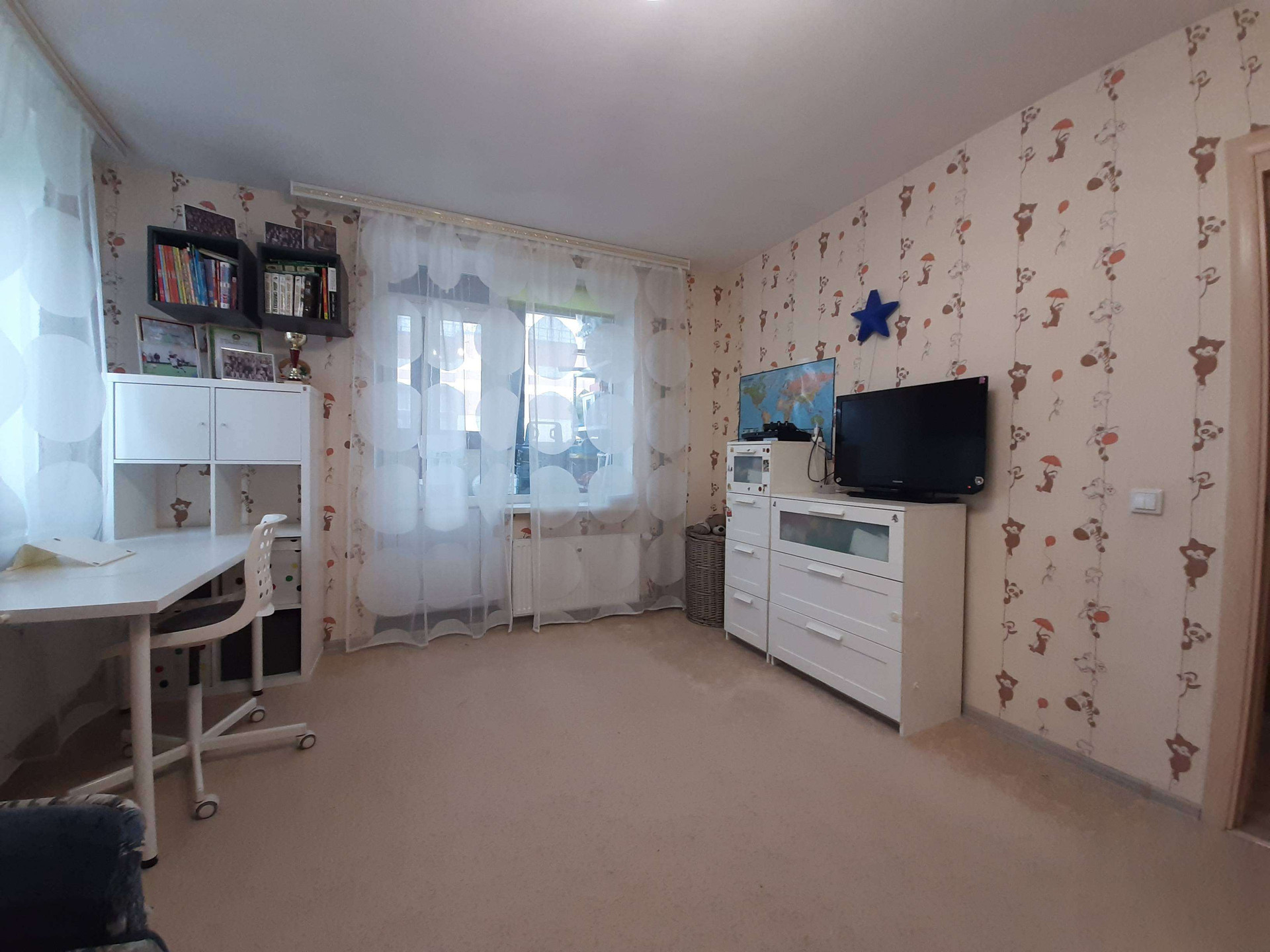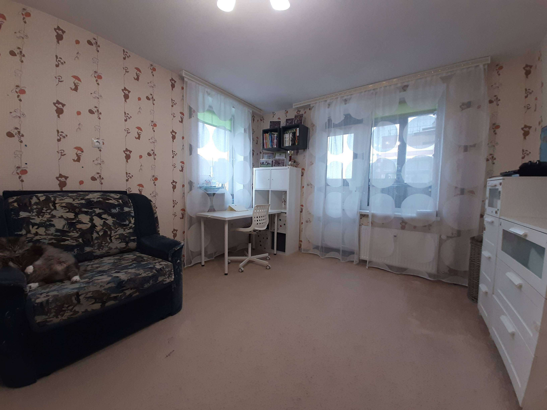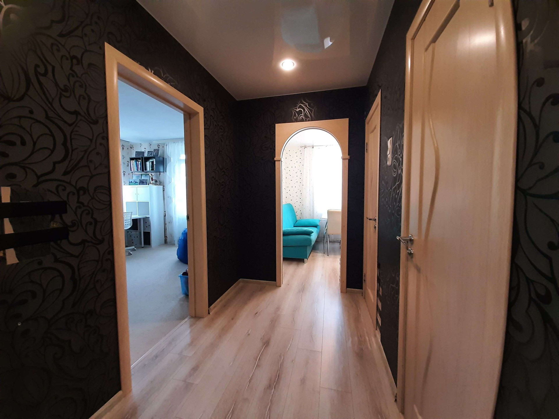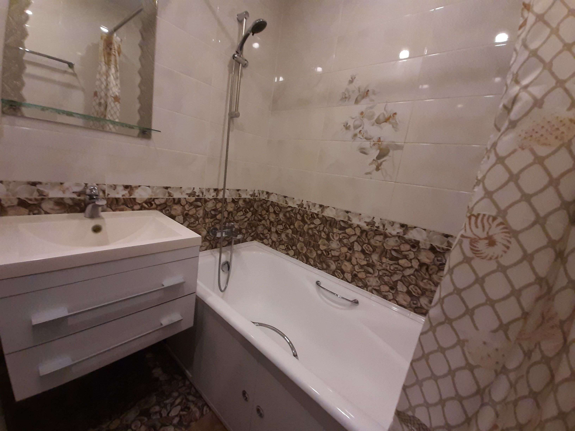 В квартире выполнен качественный ремонт не от застройщика. Делали для себя. Санузел разделенный. В прихожей большой встроенный шкаф-купе. Почти во всех комнатах навесные потолки. Есть бойлер-водонагреватель (горячая вода есть круглый год независомо от сбоев и профилактических работ).