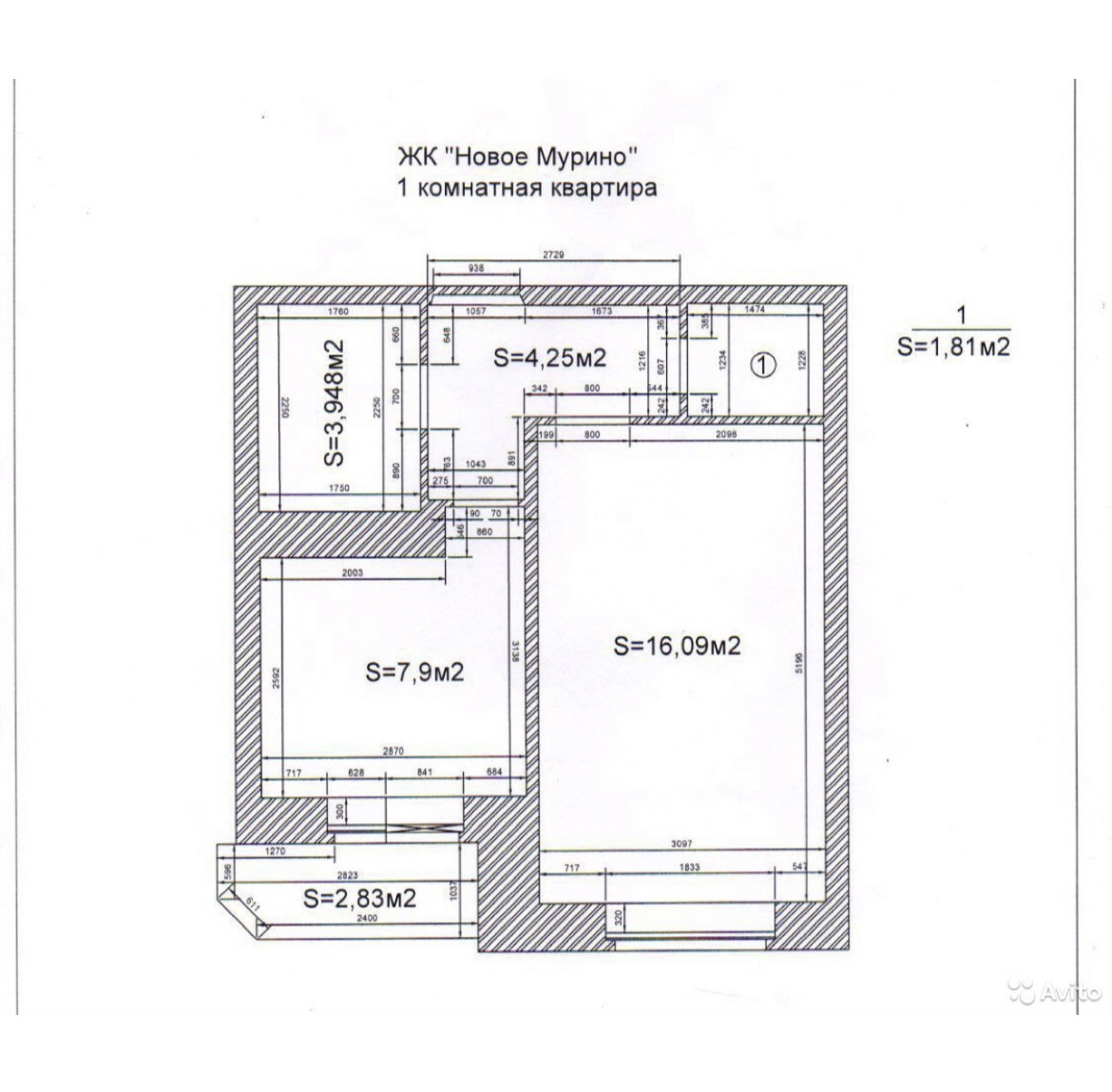 Балкон, лоджия 1 балкон