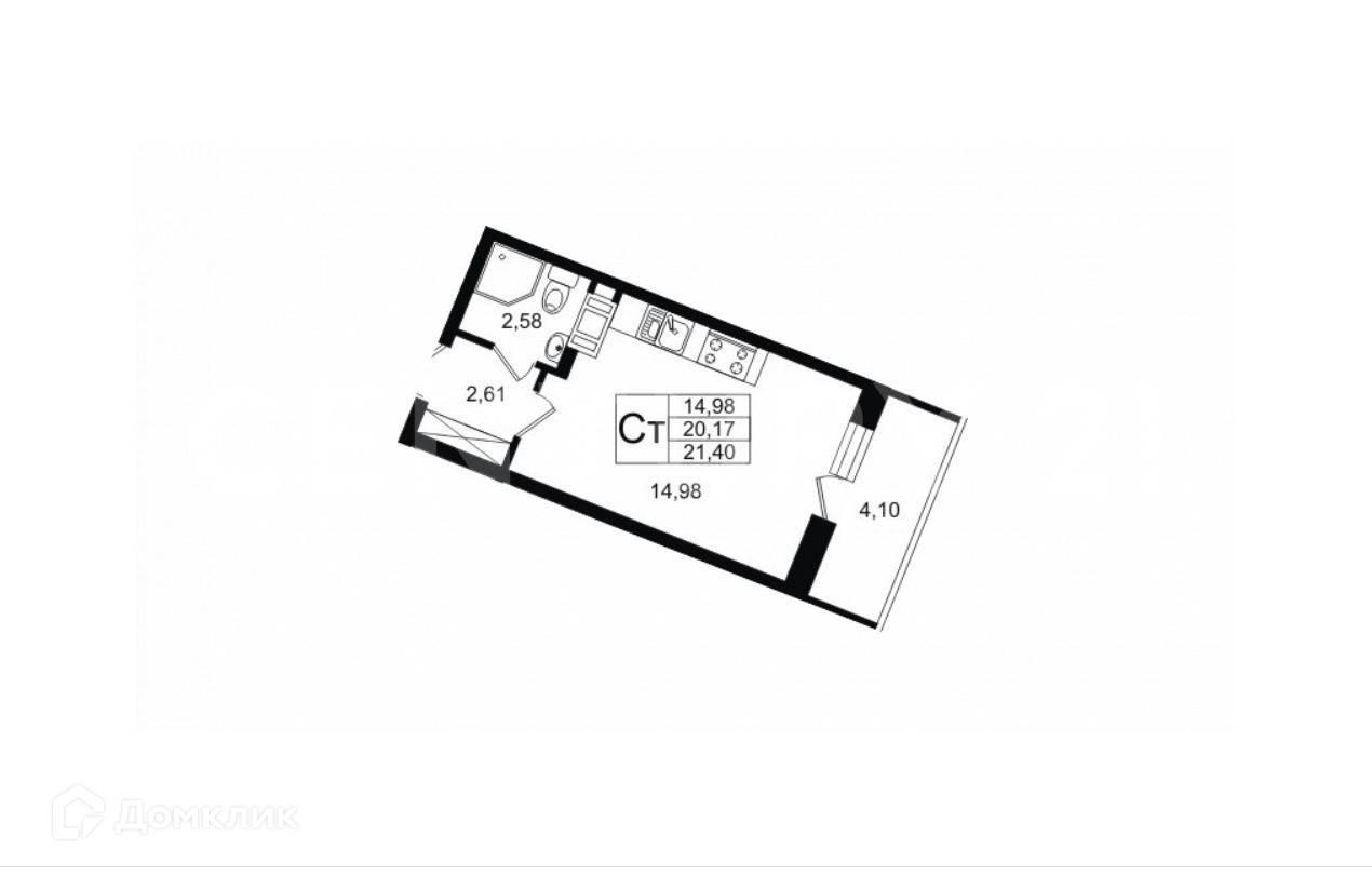 Общая площадь 20.4 м2