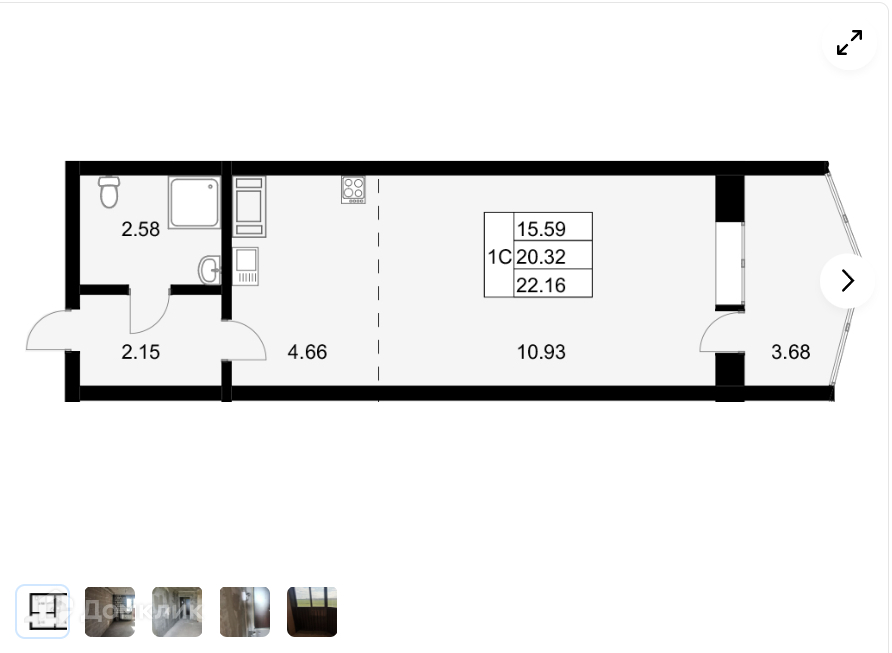 Общая площадь 22.16 м2