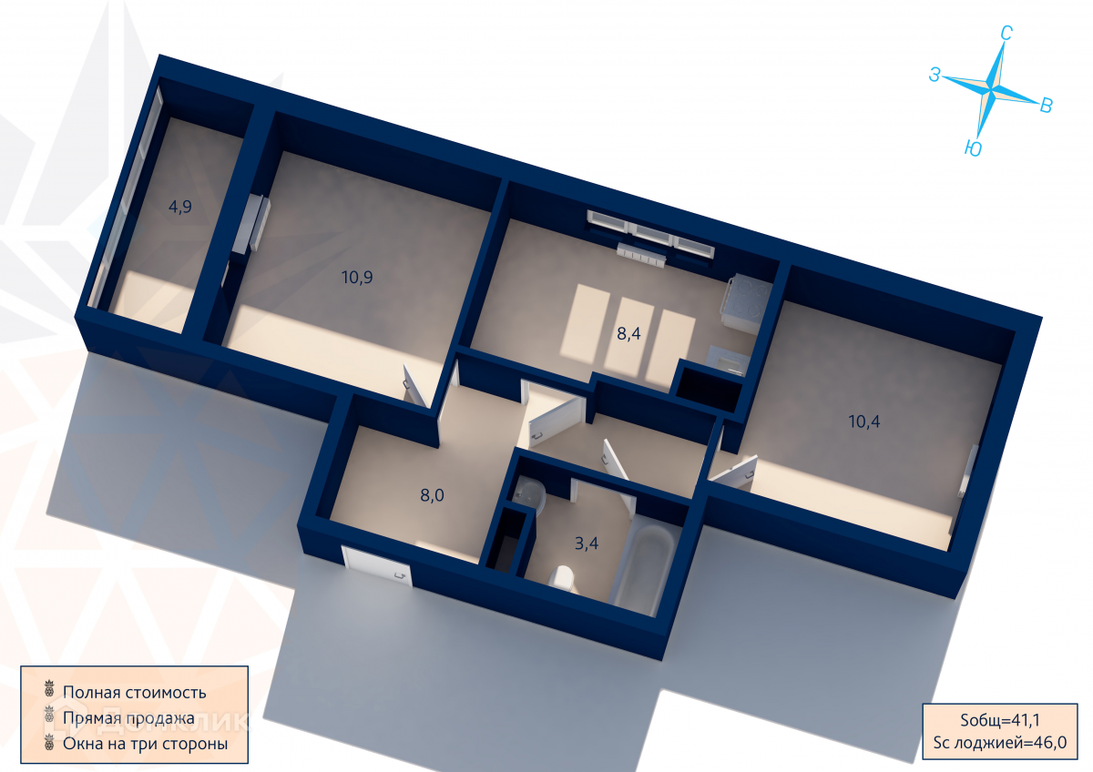 Общая площадь 41.1 м2