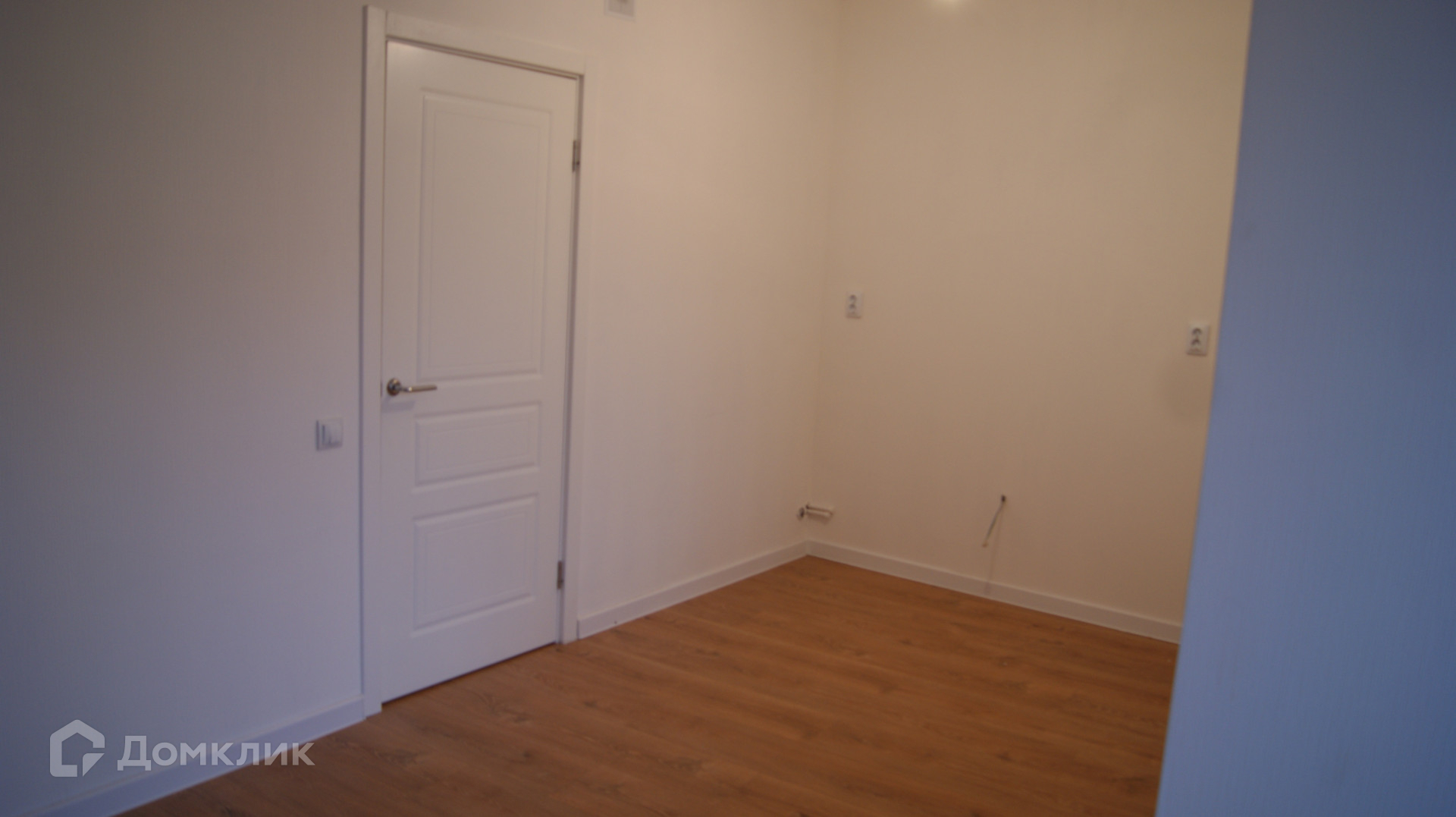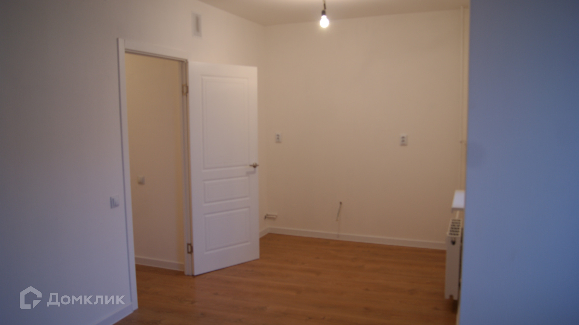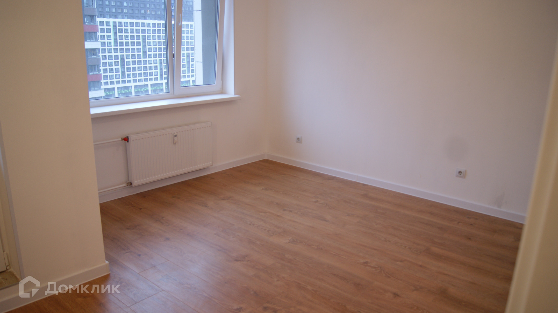 Белые стены и светлый ламинат по всей квартире. Окна выходят во двор.