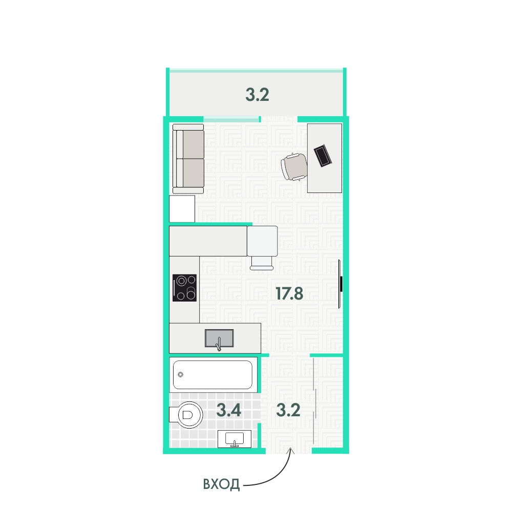 Общая площадь 24 м2
