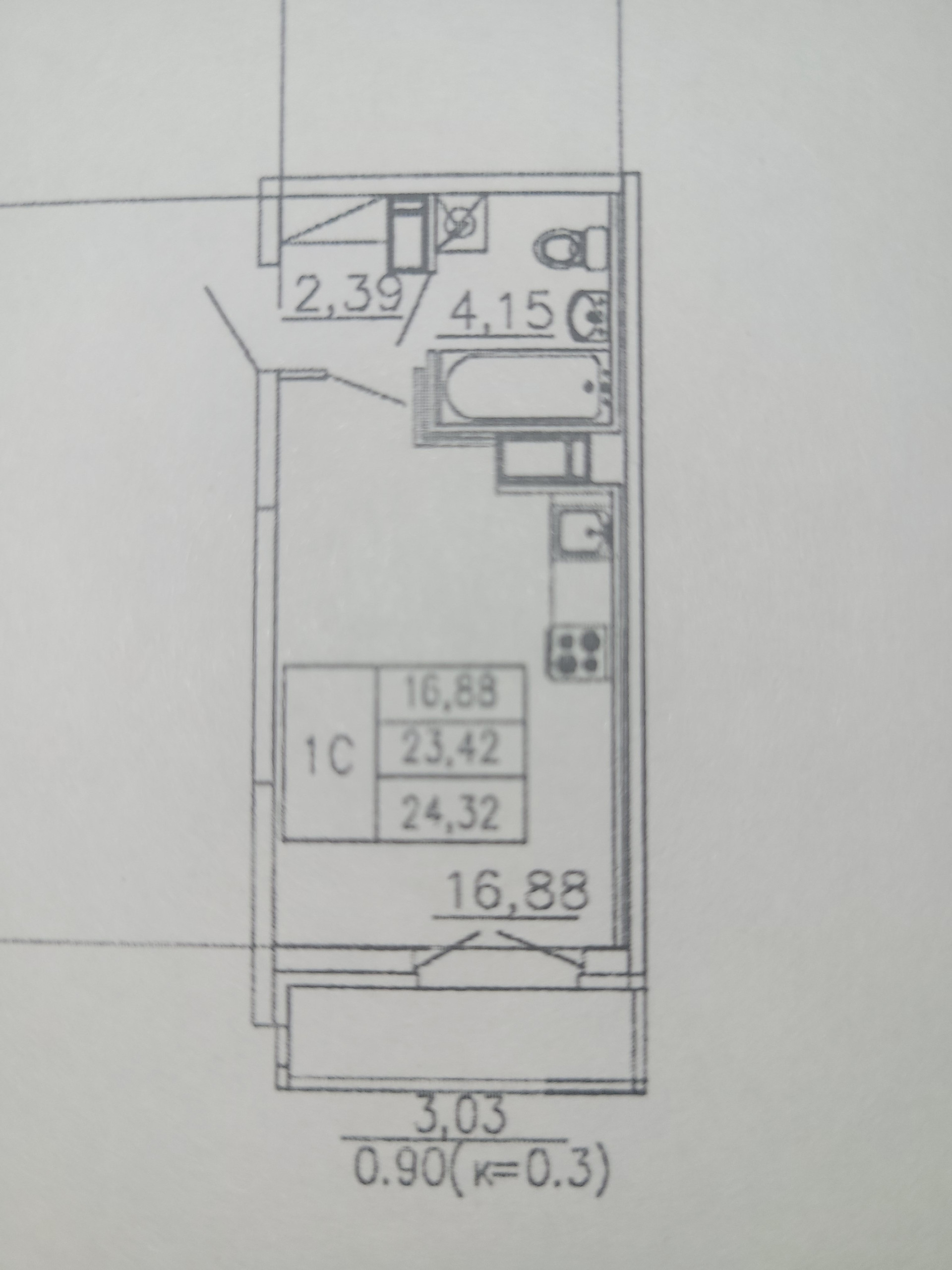 Общая площадь 23.4 м2