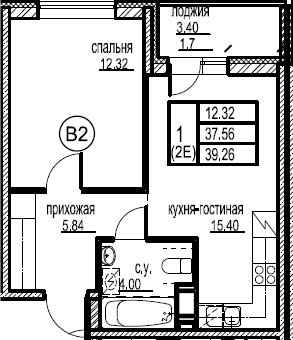 Балкон, лоджия 1 балкон