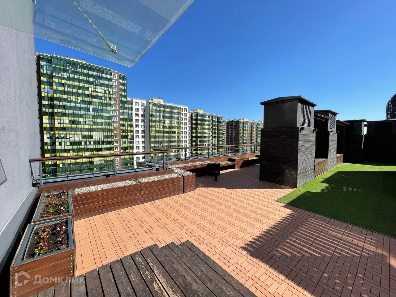 В холлах выполнена дизайнерская отделка. В жилом комплексе предусмотрены кладовые помещения, а на первом этаже КОВОРКИНГ с WI-FI, кофе и чаем. На крыше находятся lounge-зоны и ТЕРРАСЫ.