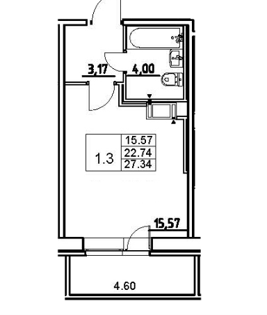 Общая площадь 27.34 м2