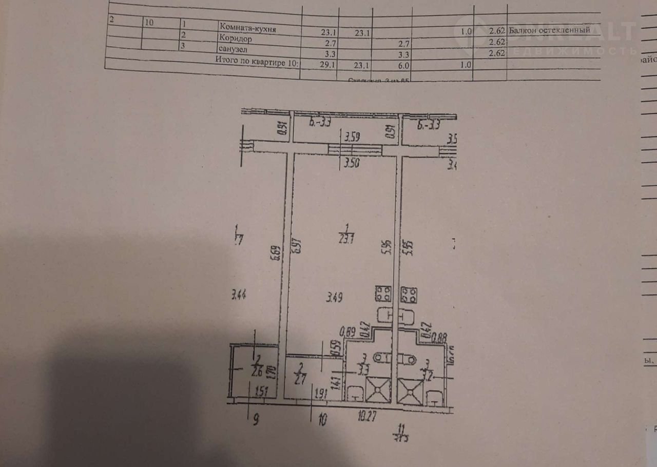 Жилая площадь 23.1 м2