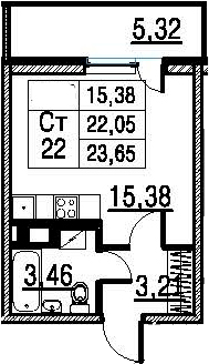 Жилая площадь 15.38 м2