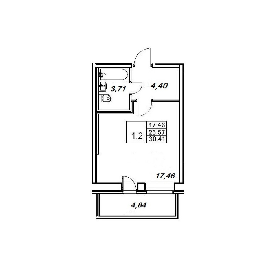 Общая площадь 30.4 м2