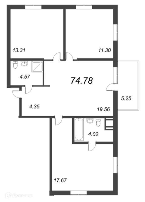 Общая площадь 74.78 м2