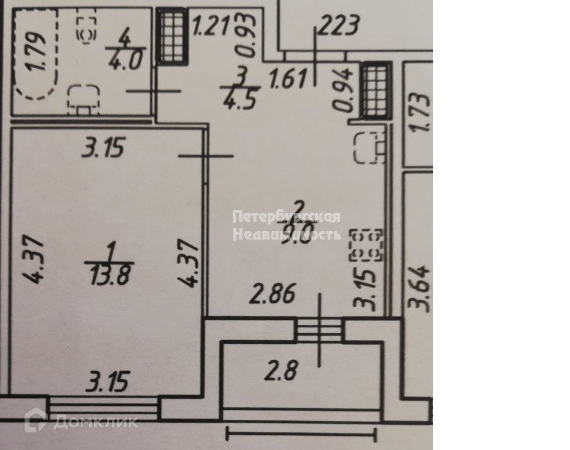 Жилая площадь 13.8 м2