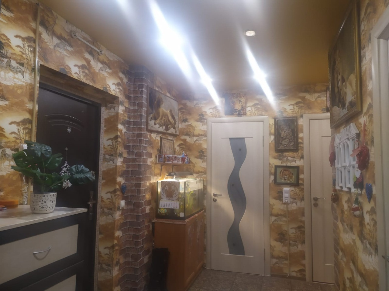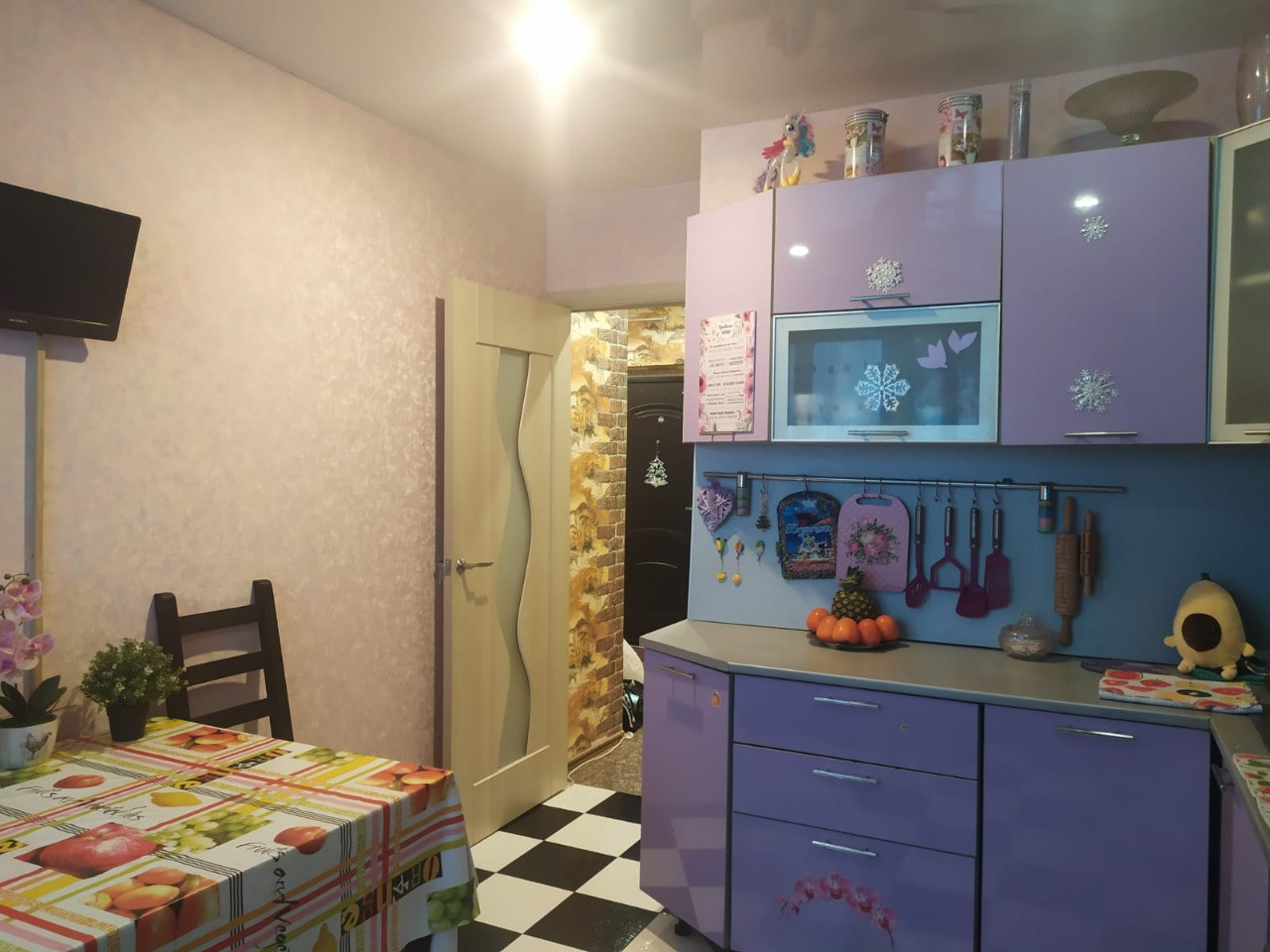 На кухне и в коридоре : напольное покрытие - клитка керамогранит, в комнате - новый линолеум 2021года.