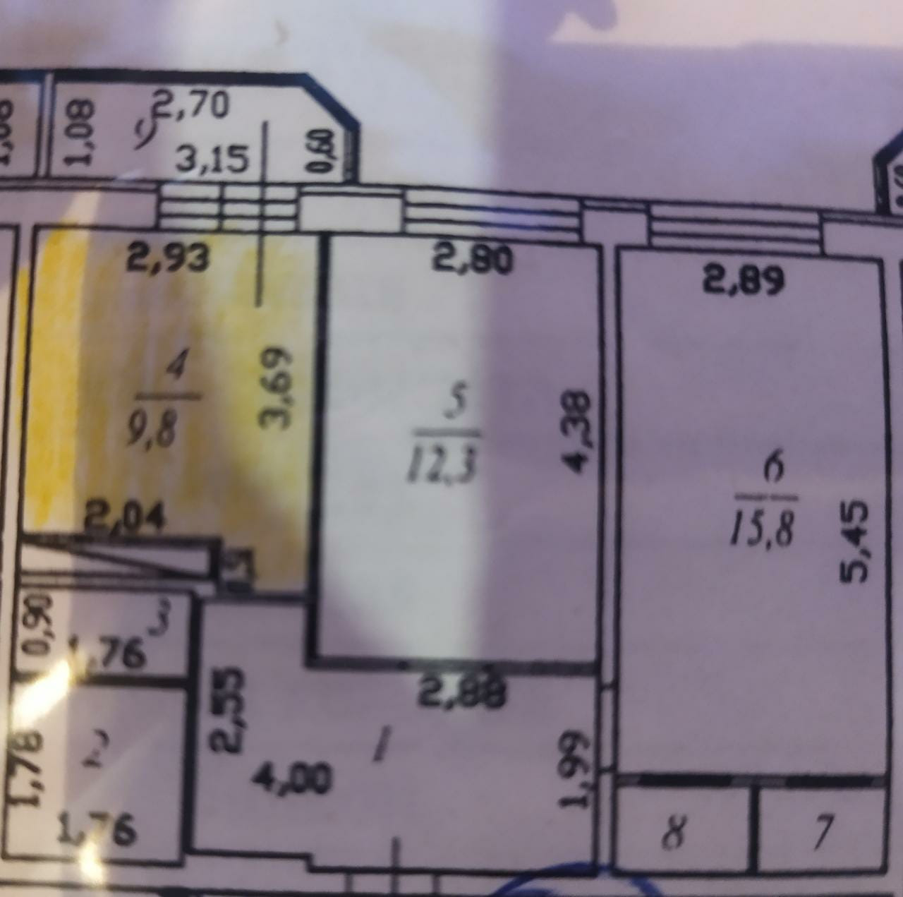 Общая площадь : 53.8 кв.м., Комнаты изолированные 15,8 кв.м. и 12,3 кв.м. , кухня 9,8 кв.м. , застекленный отделанный "под дерево" балкон с кухни площадью 3,15 кв.м. В комнате 2 встроенные кладовки, одна из которых перестроена в компьтерную комнату. Остается вся кухольная мебель, варочня поверхность (плита), вытяжка. Во встроенной кухне предназначено место для посудомоечной машины 60*40см, жарочного шкафа. Возможно продажа с мебелью из Икеа.