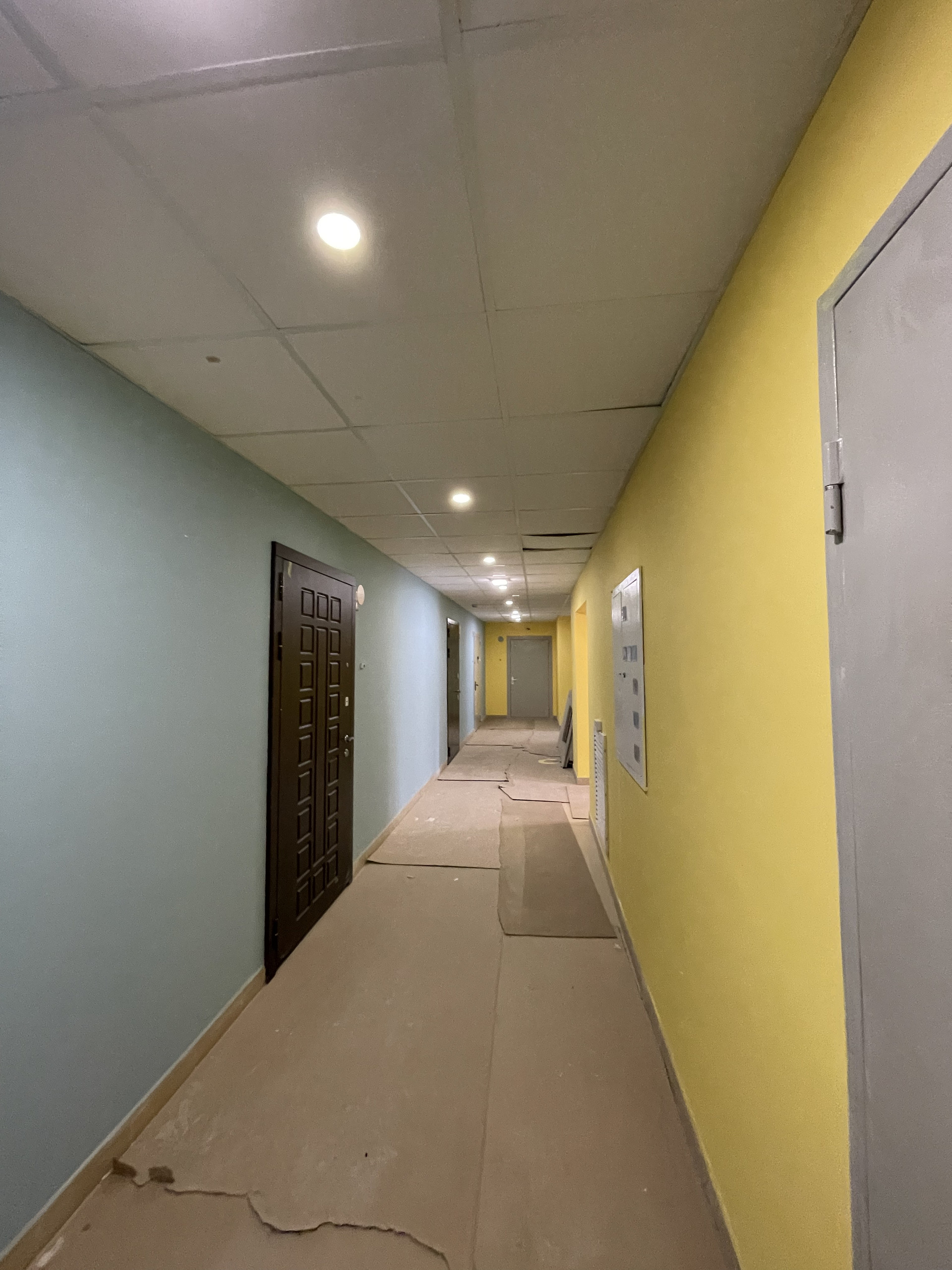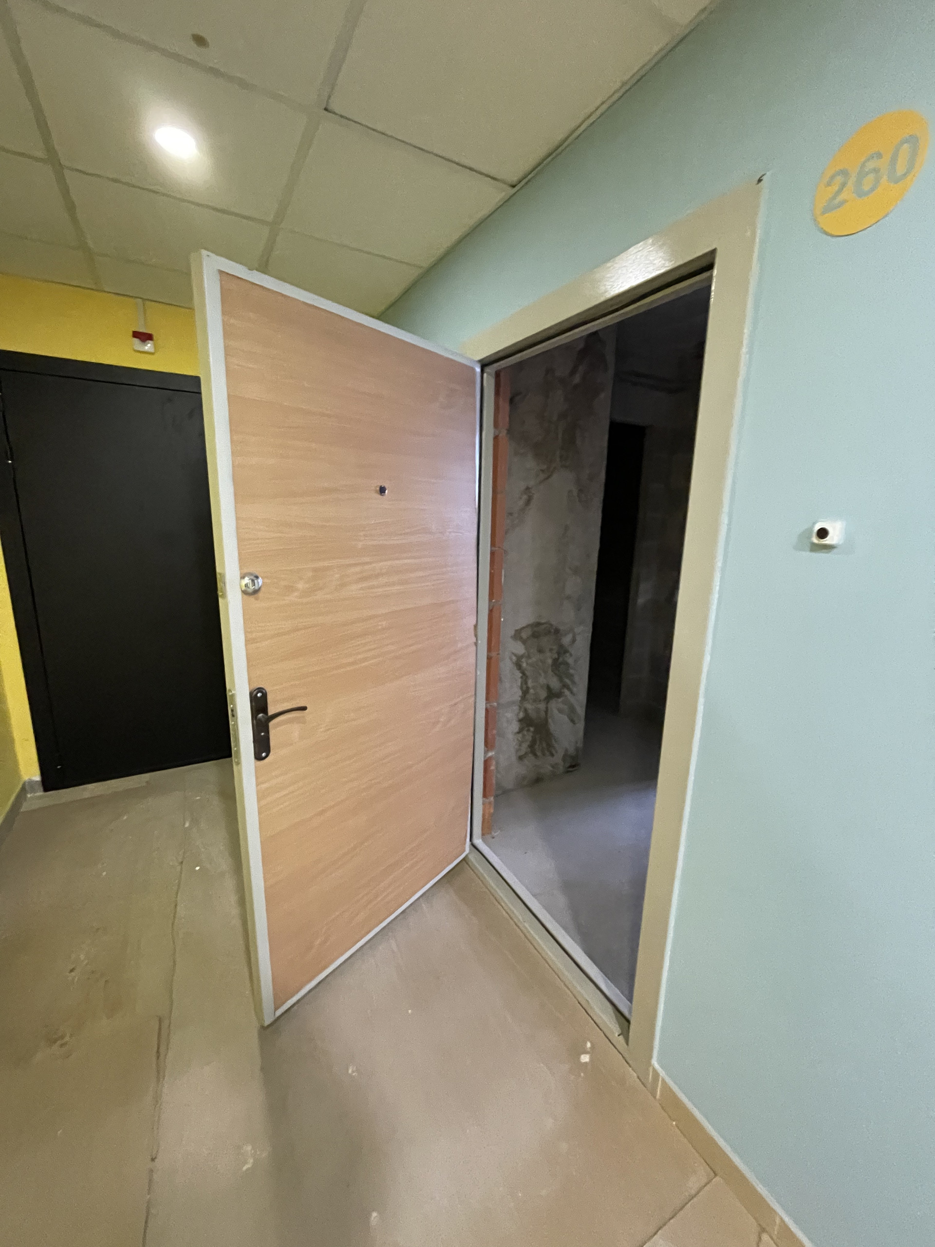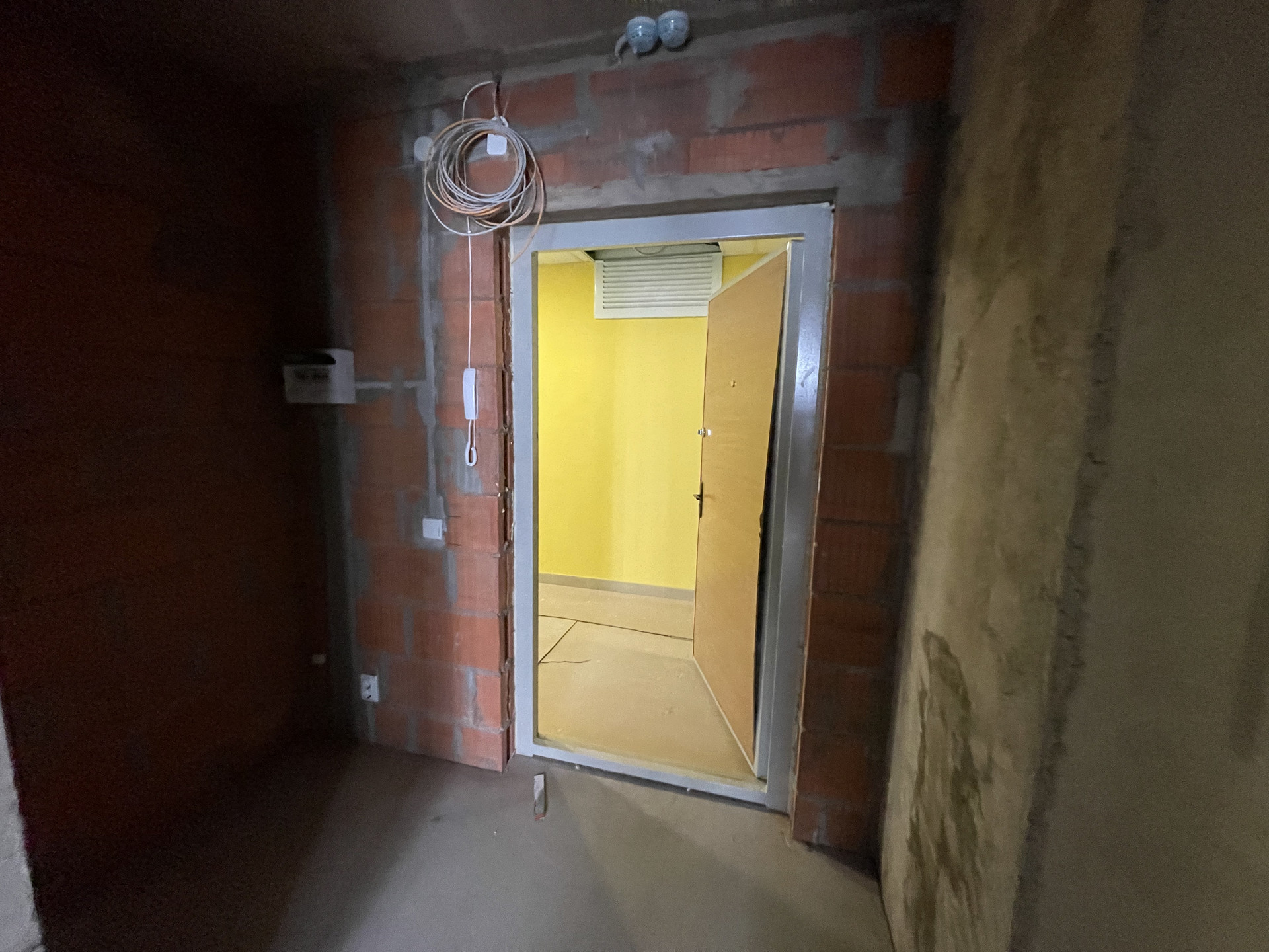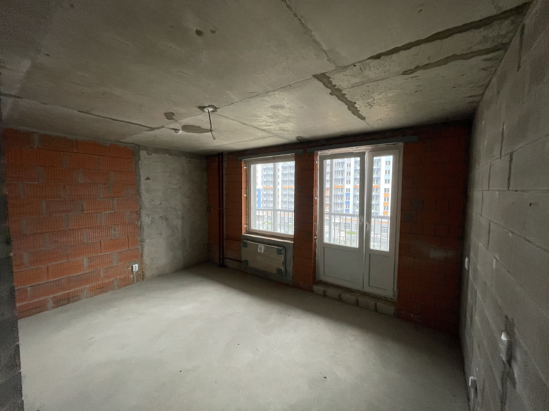 Пол стяжка, смонтированы выпуски разводки холодного и горячего водоснабжения, выводы под сантехнику, установлены современные радиаторы.