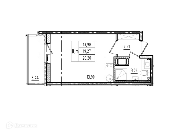Общая площадь 19.3 м2