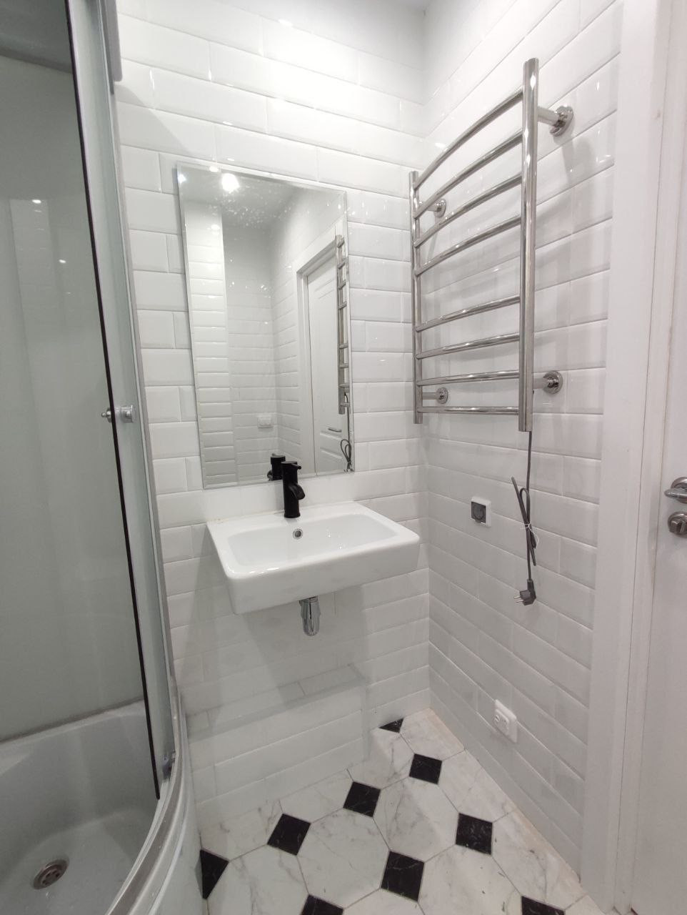 Качественная отделка в скандинавском стиле, хорошая сантехника.Тёплый пол в санузле. Установлен видеодомофон.
