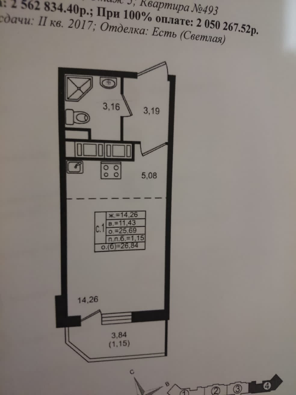 Квартира студия, 25.4 м2, этаж 5 / 10, на продажу в Мурино, Воронцовский бульвар, 8
