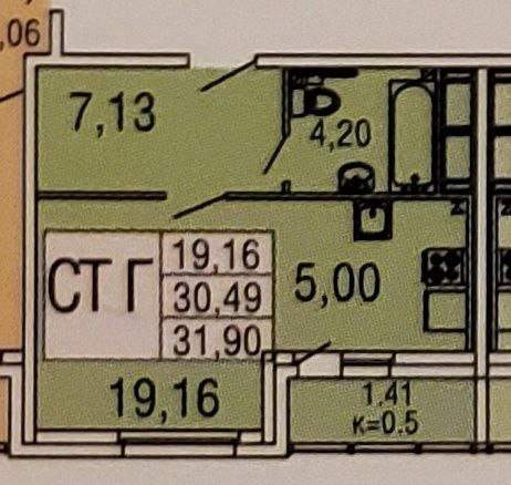 Общая с балконом - 30,45кв. м.