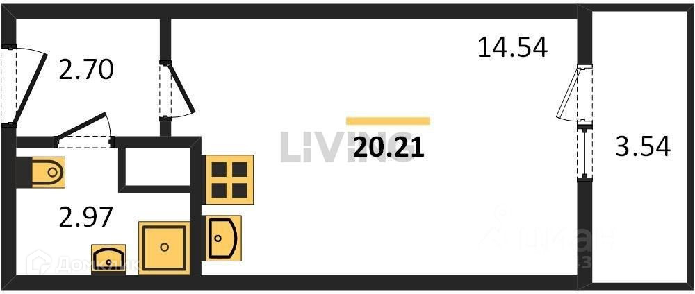 Общая площадь 20.2 м2