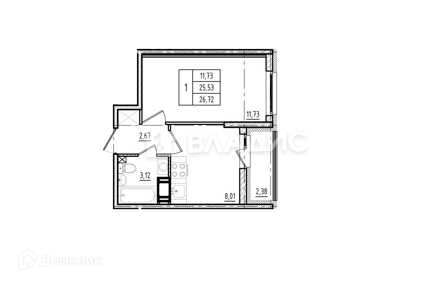 Общая площадь 26 м2