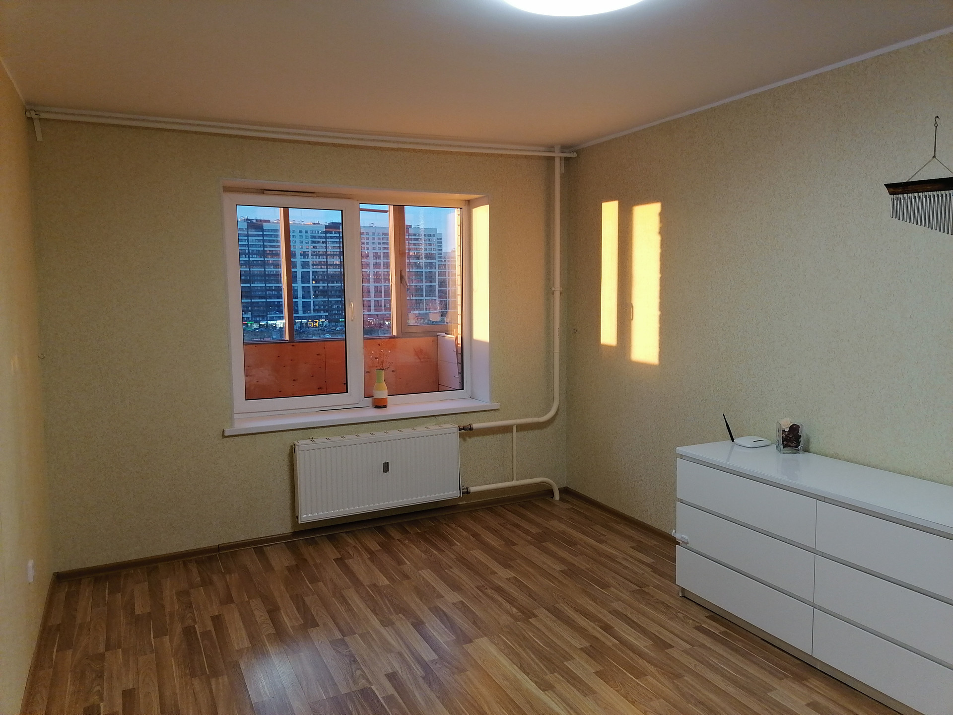 Свежий дом (сдан в октябре 2014г), кирпич-монолитная технология, секция 1А – всего 15 этажей (соседние дома 25), полное фасадное остекление (а значит тихо и тепло), огромная лоджия на весь фасад квартиры, потолки 2.6м, входная сейфовая металлическая дверь из 3мм стали, лифты OTIS, во дворе зона отдыха, детская площадка, парковка, полностью закрытая территория.
