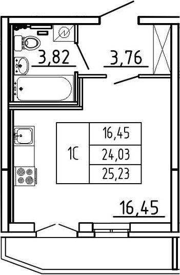 Балкон, лоджия 1 балкон