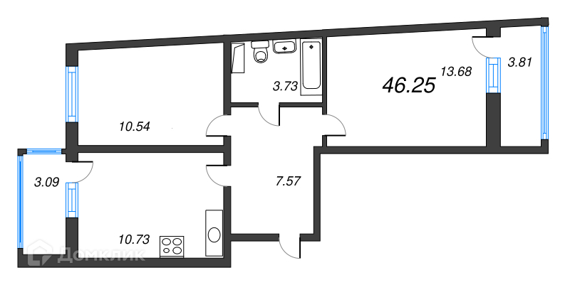 Общая площадь 46.25 м2