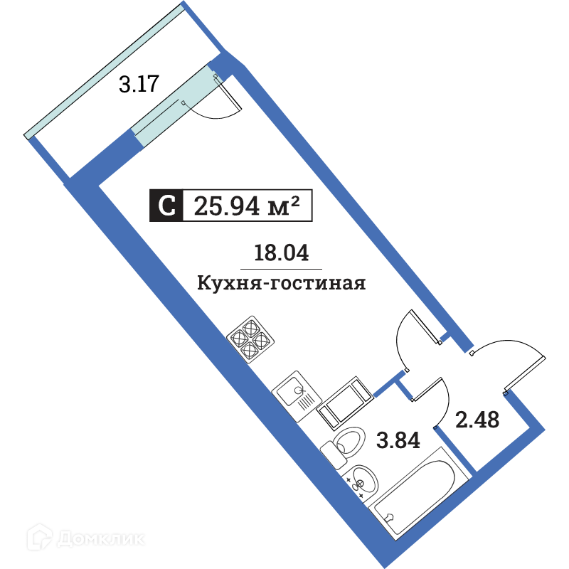 Общая площадь 25.94 м2
