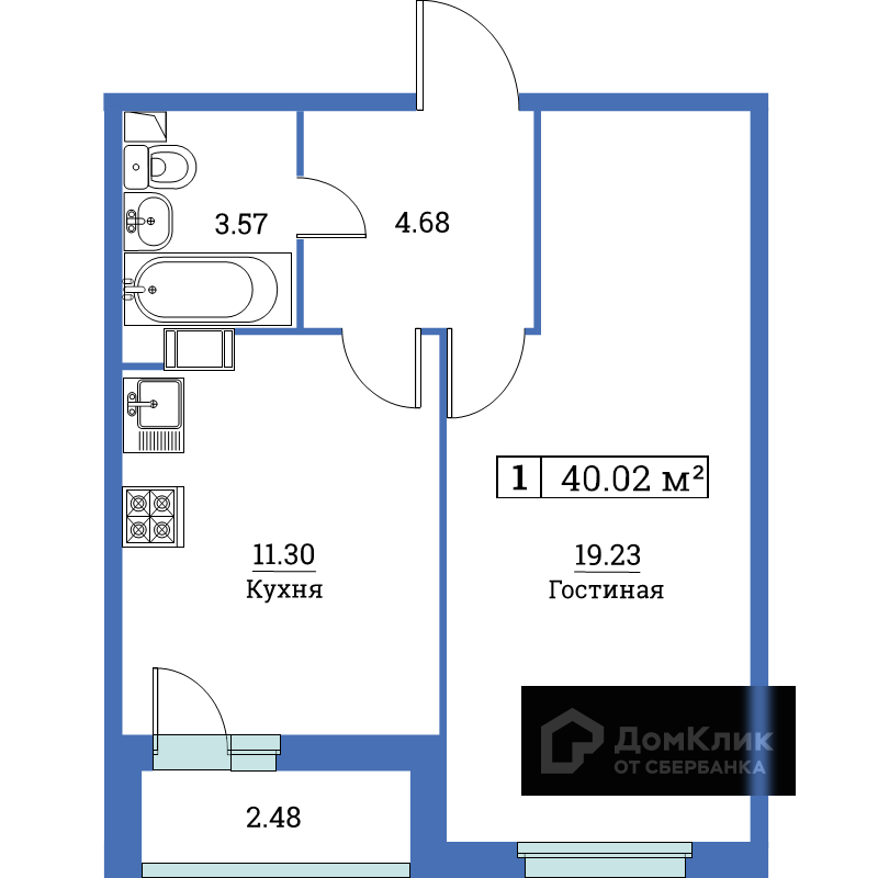 Общая площадь 40.02 м2