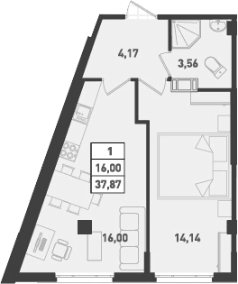 Общая площадь 37.87 м2