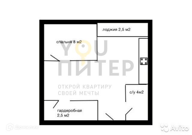 Общая площадь 34 м2