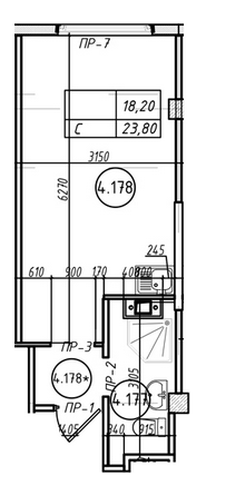 Общая площадь 24.7 м2