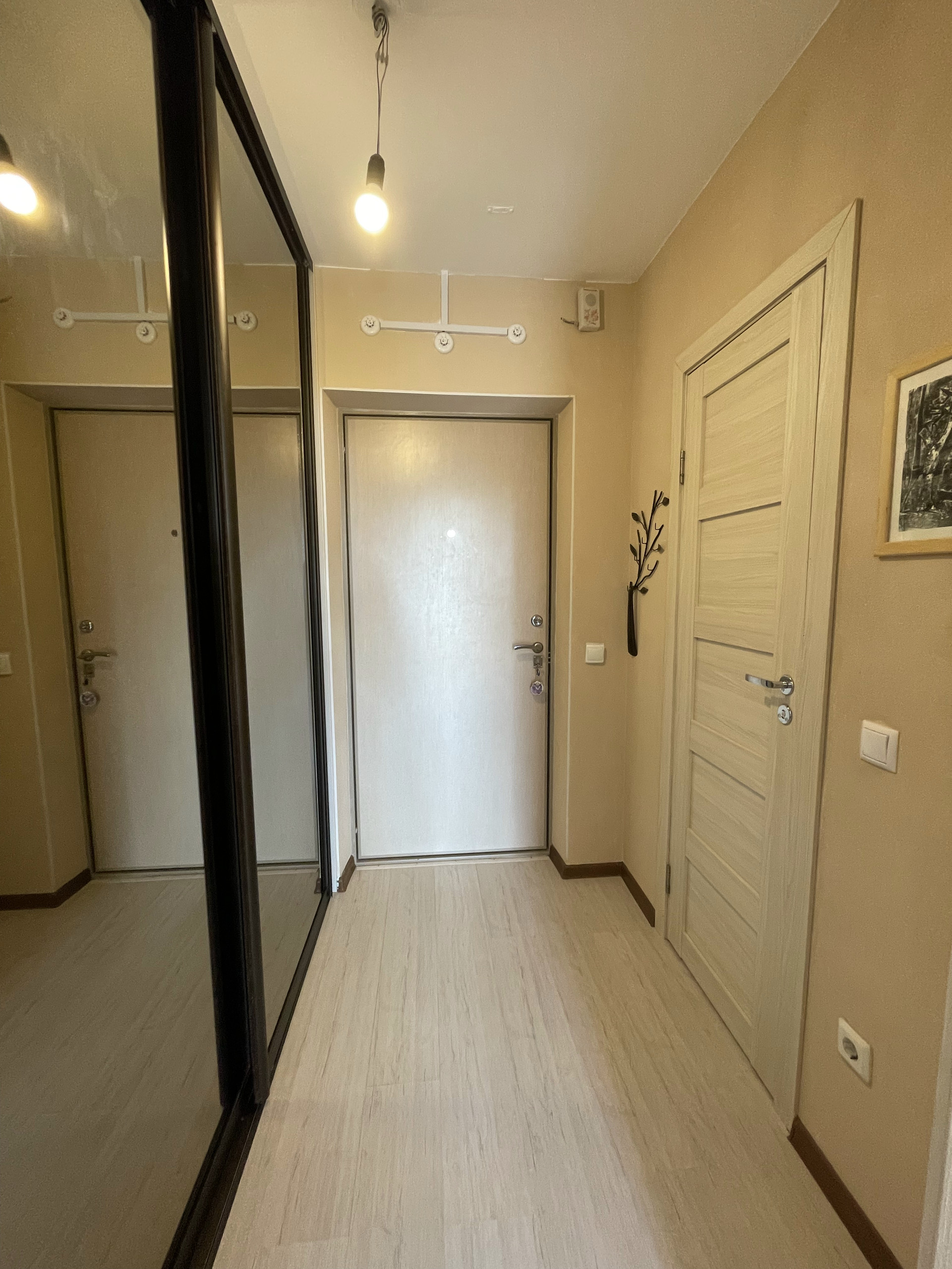 В прихожей вместительный встроенный шкаф.