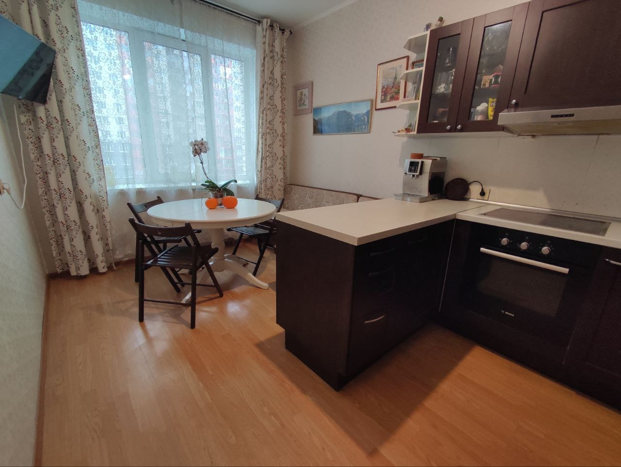 Квартира очень теплая, с большой квадратной кухней и двумя спальнями.