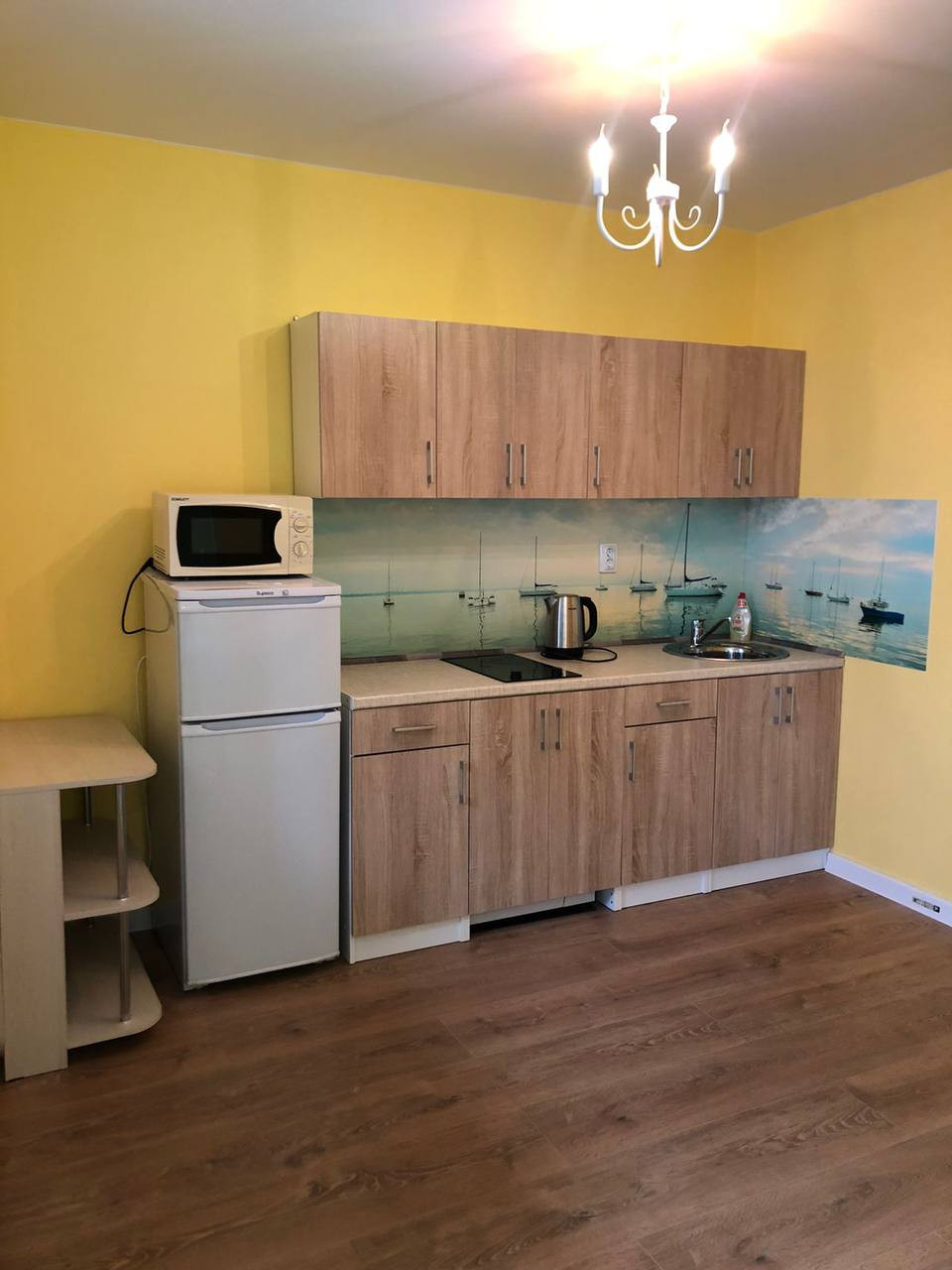 ЖК "Авиатор". Продается отличная студия с ремонтом в доме комфорт класса, на 3-ем этаже 15-этажного дома. Общая площадь 23,7м. В квартире полы ламинат, обои под покраску. В санузле кафель, пол с подогревом. Квартира продается с мебелью и бытовой техникой. Сделано освещение отдельно в кухонной и жилой зоне. Есть видеодомофон. Чистый и ухоженный подъезд. Три лифта. Оригинальный фасад дома. Закрытый двор без машин, охраняемая территория. Во дворе современные детские и спортплощадки. Есть паркинг. На территории ЖК в 2024 году будет школа и детский сад, строится поликлиника. Рядом с домом "Пятерочка" и другие магазины и кафе. До метро "Девяткино" 20 минут пешком или 5-7 минут на транспорте. Остановка рядом с домом. Также можно доехать до метро "Озерки" и до "Ленты" в Бургах.  Удобный выезд на КАД. Прямая продажа.