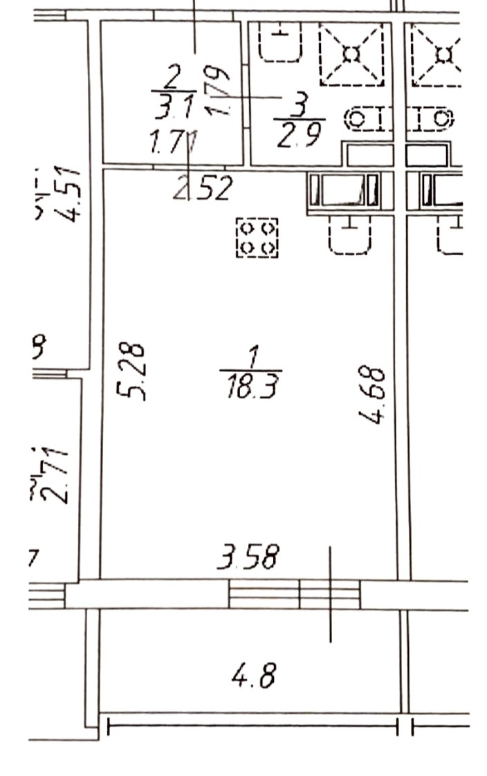Общая площадь 24.3 м2