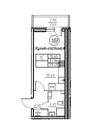 Общая площадь 23.45 м2