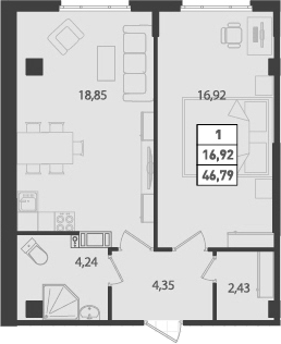 Общая площадь 46.79 м2