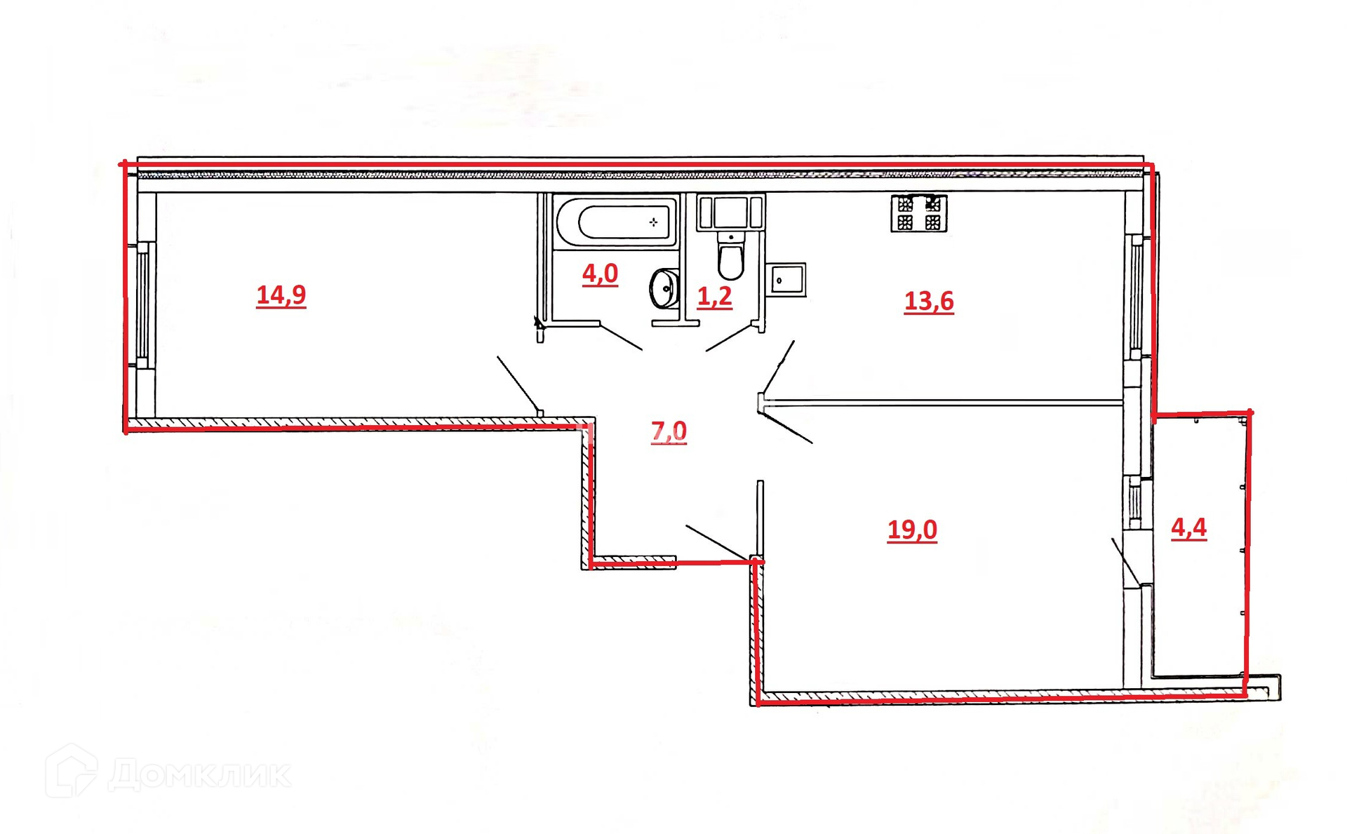 Жилая площадь 33.9 м2