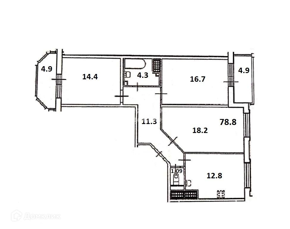 Общая площадь 78.8 м2