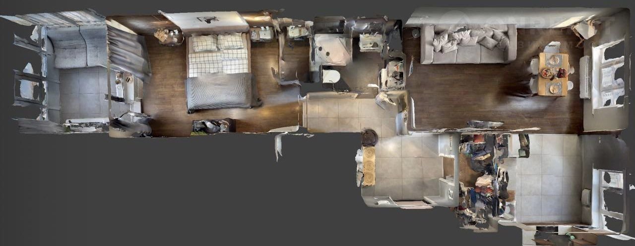 Квартира расположена на 21 этаже 22-этажного дома. Самая дальняя от лифтовой зоны, как следствие, никаких шумов. Соседи по площадке либо невидимы, либо работают в разведке.