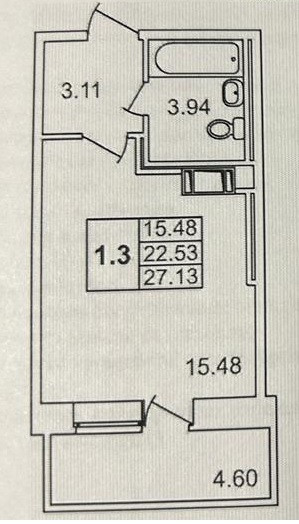 Общая площадь 27.13 м2