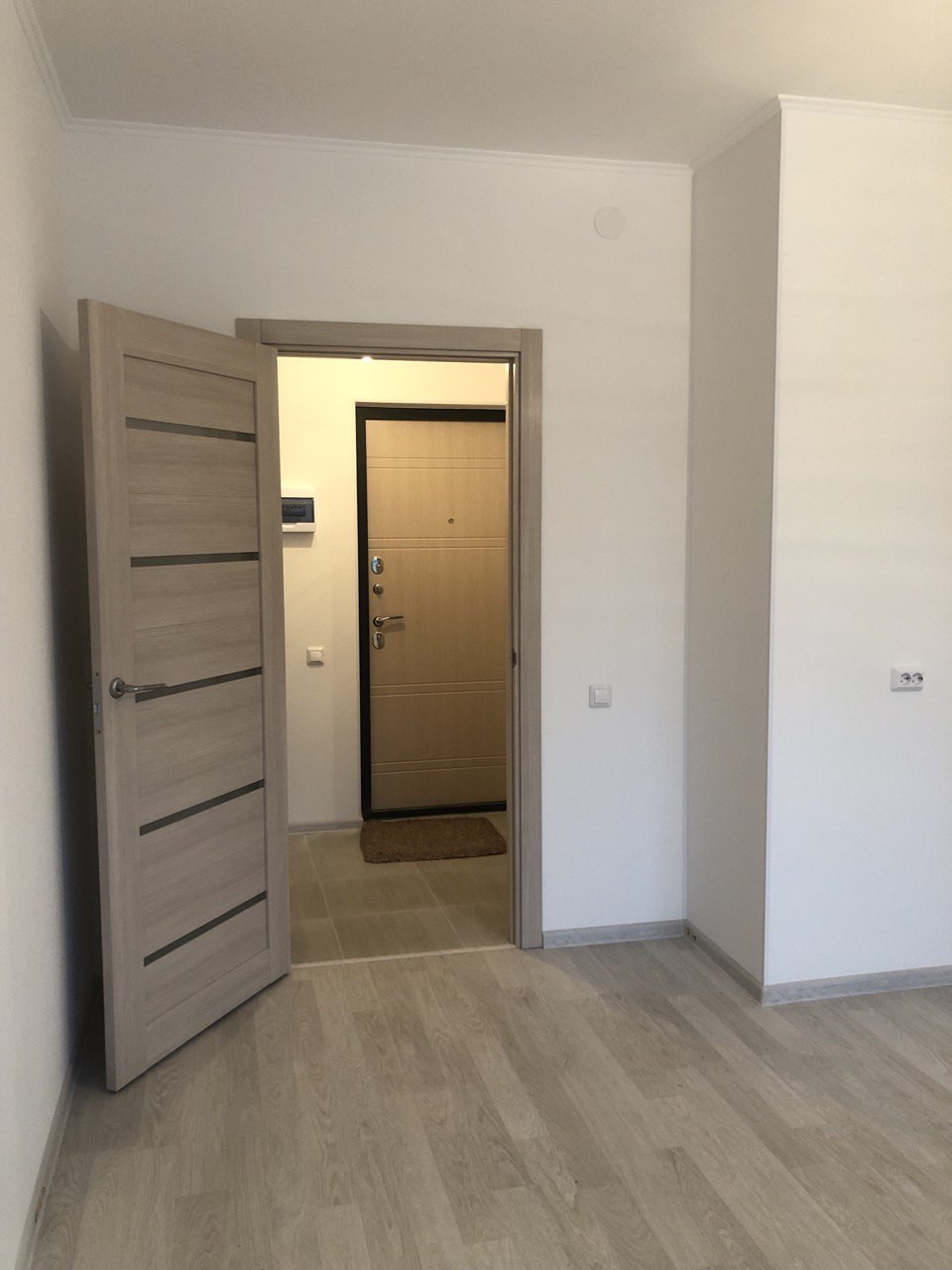 Квартира теплая и светлая, качественная входная дверь, в коридоре на полу плитка, есть ниша под шкаф