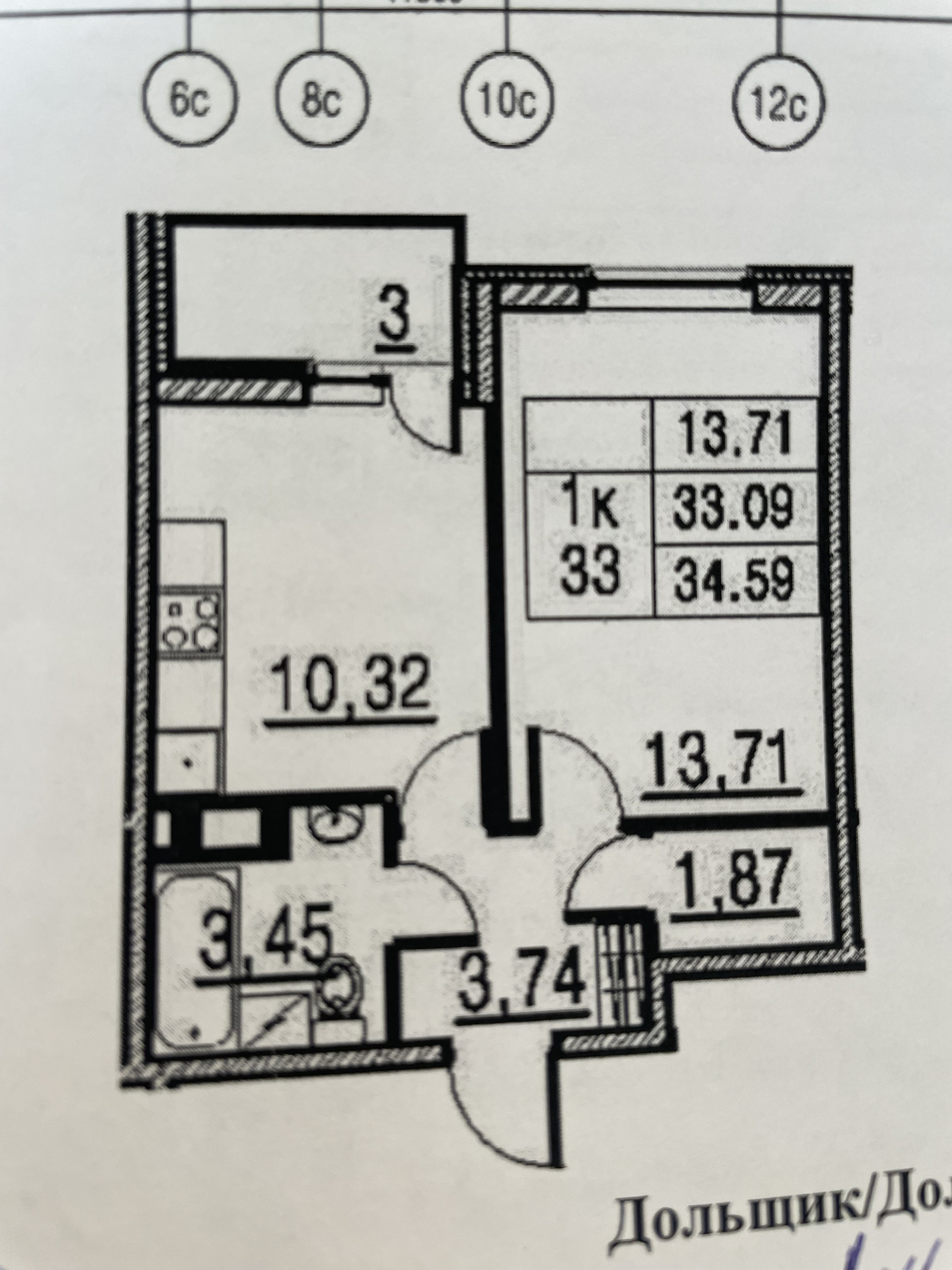 Общая площадь 34.5 м2