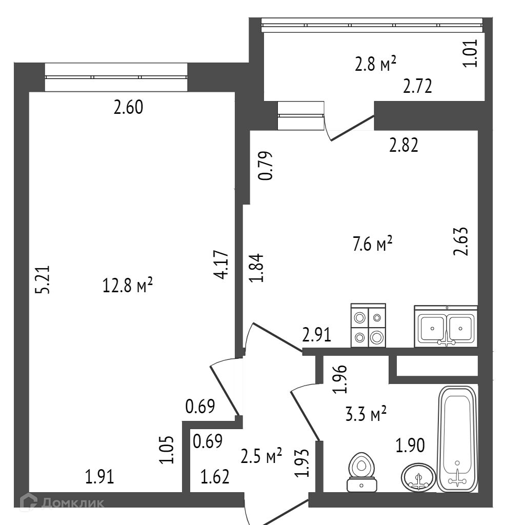 Общая площадь 26.2 м2